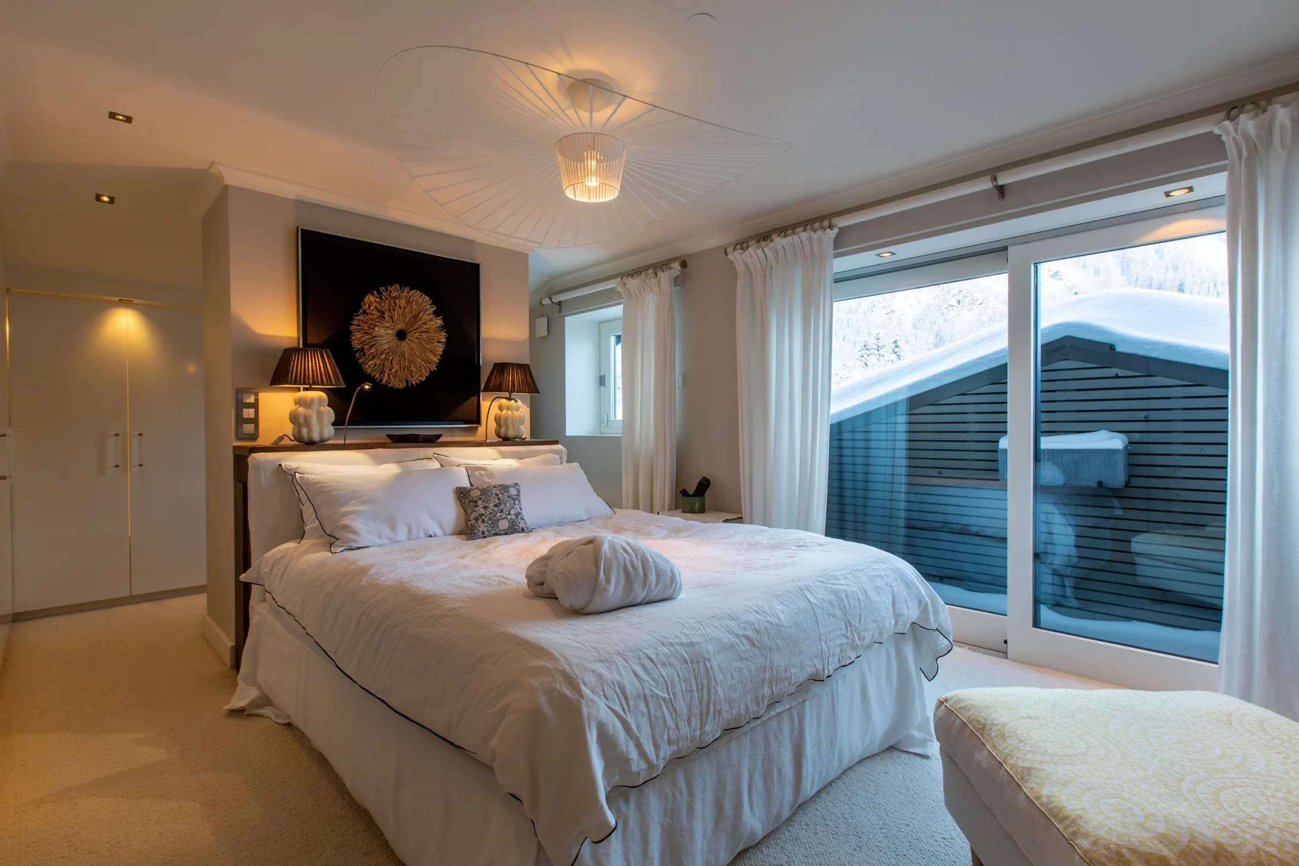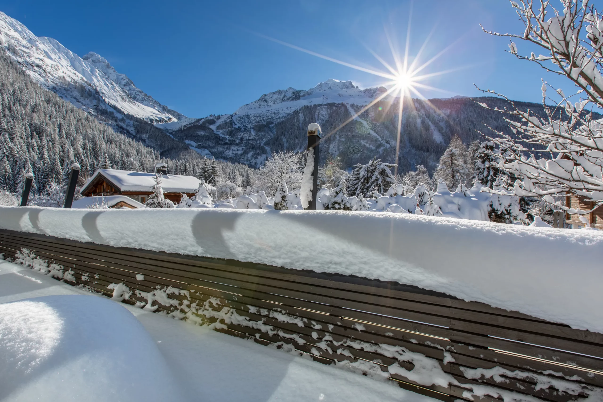 Pour des instants de pure détente, la terrasse plein sud vous attend, offrant une vue imprenable sur le glacier d’Argentière, un spectacle à couper le souffle, sous le soleil des Alpes.